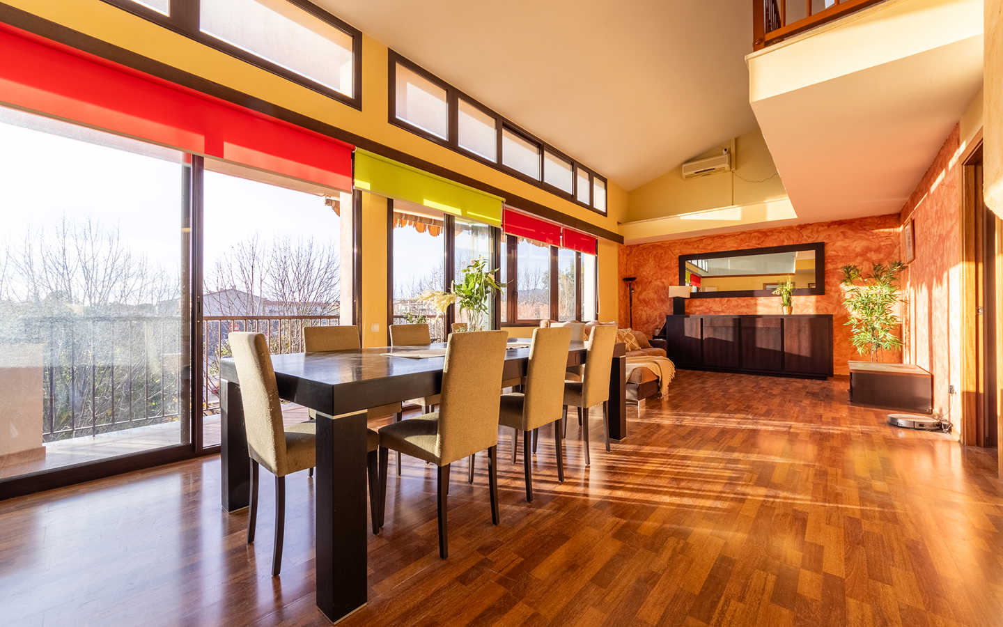 Ático dúplex de 235 m2 construidos. La planta de entrada está formada por el recibidor, un amplio salón comedor con acceso a la terraza con vistas a la Rambla, una cocina independiente y parcialmente equipada con un cómodo lavadero, 3 habitaciones ...